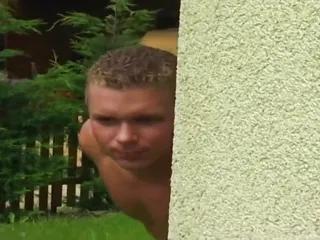 Vollbusige Oma will im Garten einen jungen Schwanz in sich fühlen